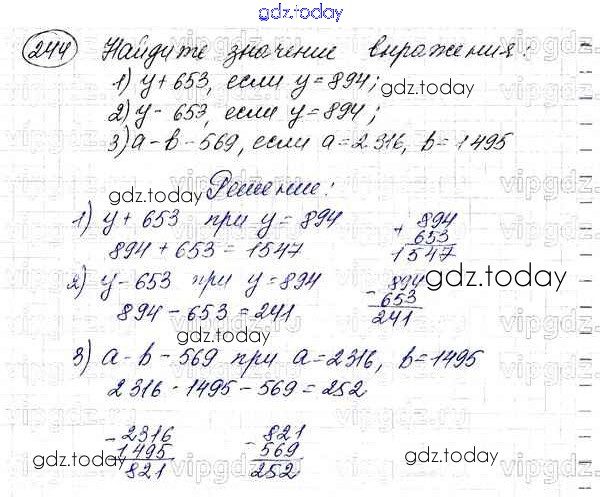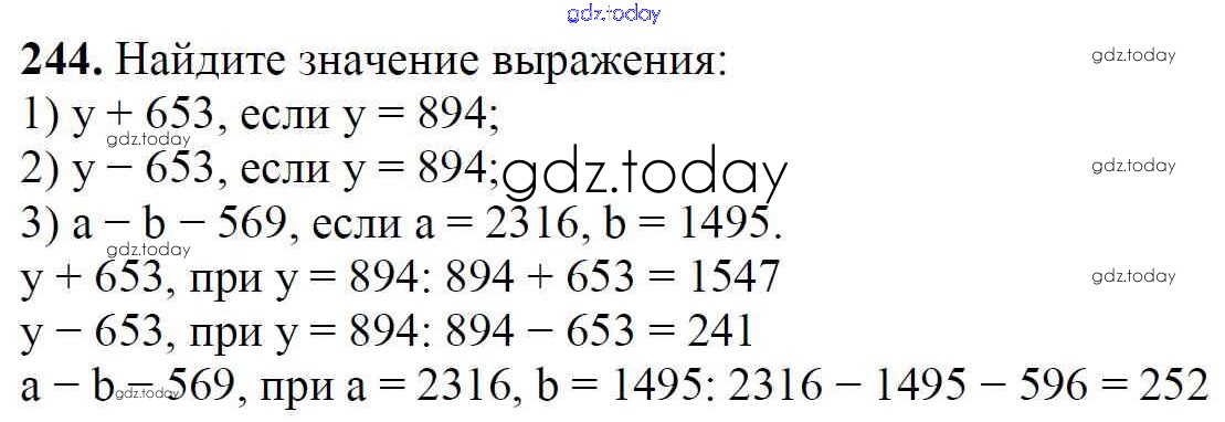 Ответы к §9. Числовые и буквенные выражения. Формулы Решение к главе 2. Сложение и вычитание натуральных чисел 244 Учебнику по Математике для 5 класса Мерзляк, Полонский Вентана-граф Алгоритм успеха 2016