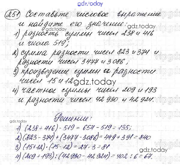 На страницах сайта gdz.today вы найдете учебный и вспомогательный материал, направленный на улучшения знаний школьной программы. ГДЗ - онлайн мир знаний §9. Числовые и буквенные выражения. Формулы Решение к главе 2. Сложение и вычитание натуральных чисел 251 Учебнику по Математике для 5 класса Мерзляк, Полонский Вентана-граф Алгоритм успеха 2016