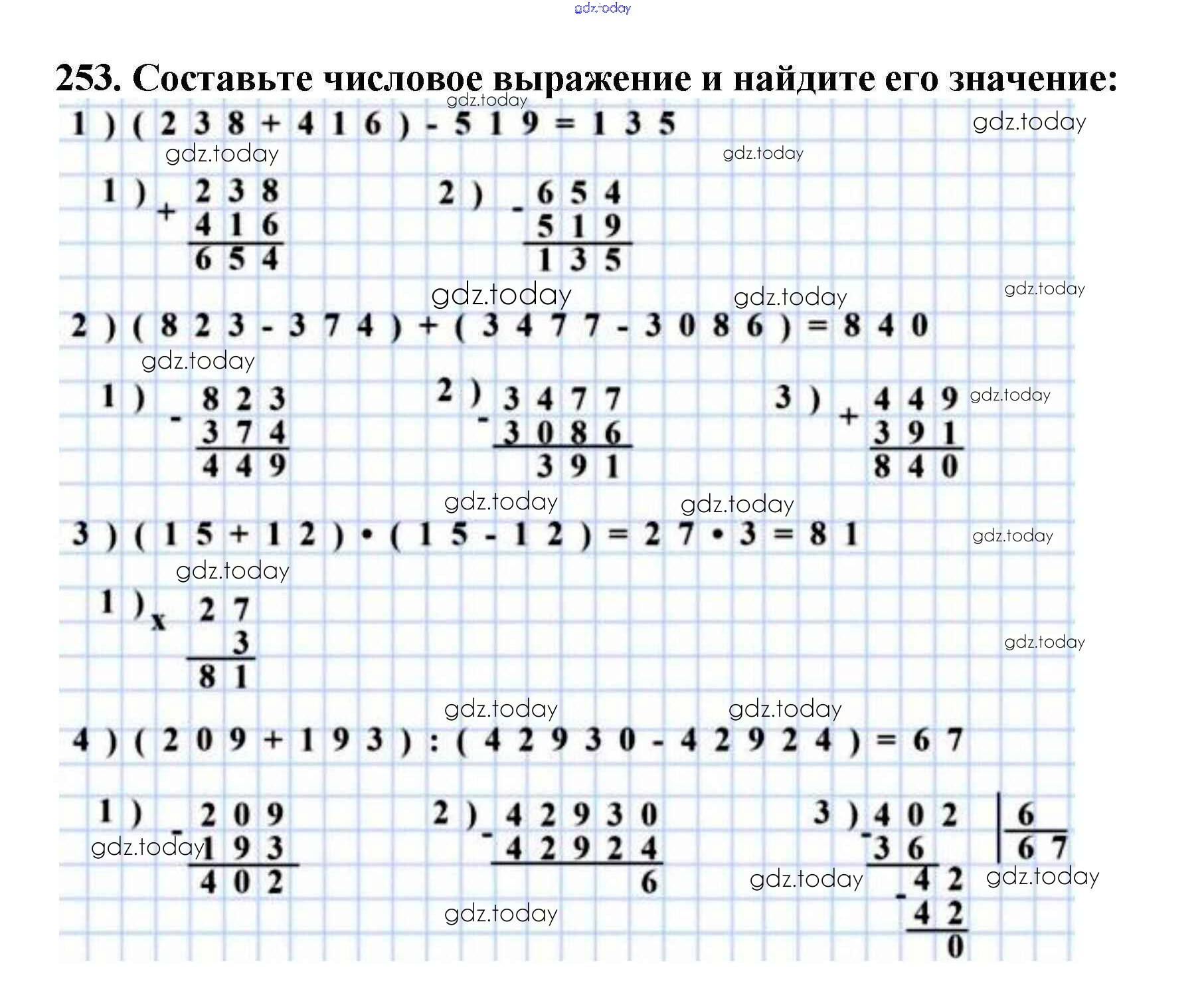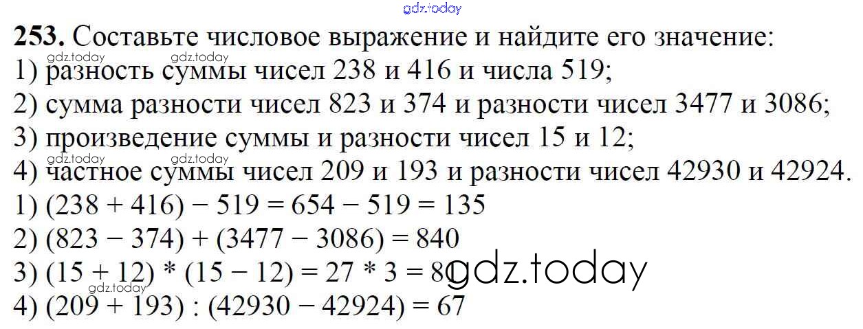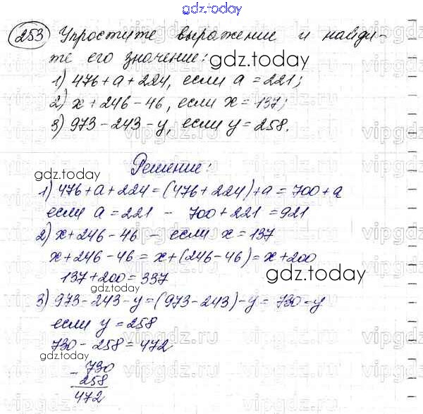 На страницах сайта gdz.today вы найдете учебный и вспомогательный материал, направленный на улучшения знаний школьной программы. ГДЗ - онлайн мир знаний §9. Числовые и буквенные выражения. Формулы Решение к главе 2. Сложение и вычитание натуральных чисел 253 Учебнику по Математике для 5 класса Мерзляк, Полонский Вентана-граф Алгоритм успеха 2016