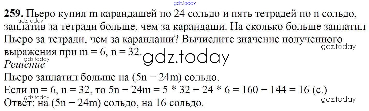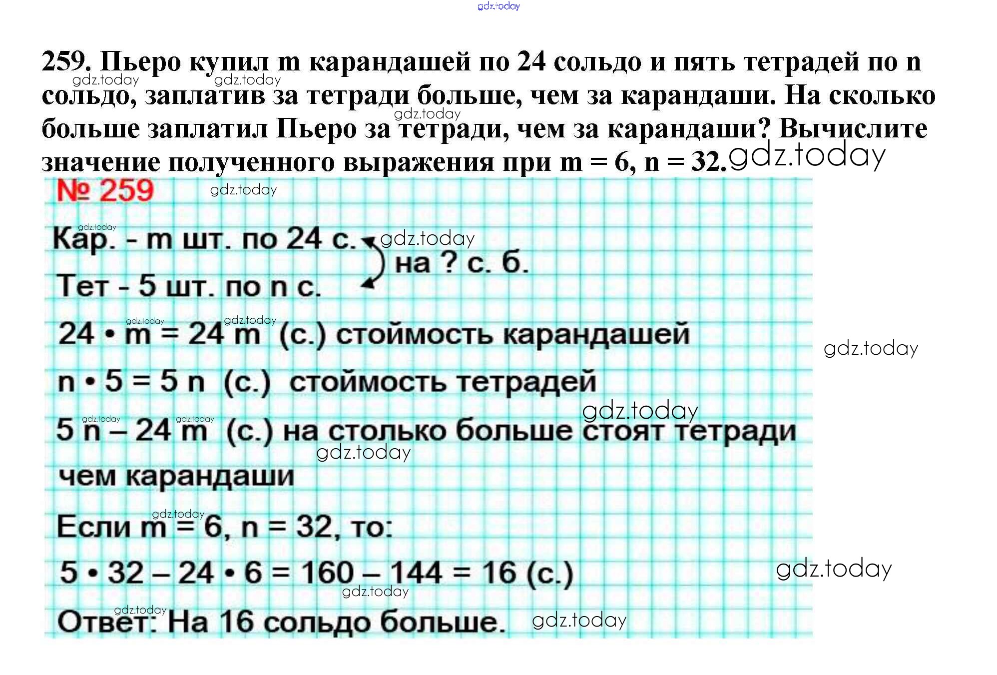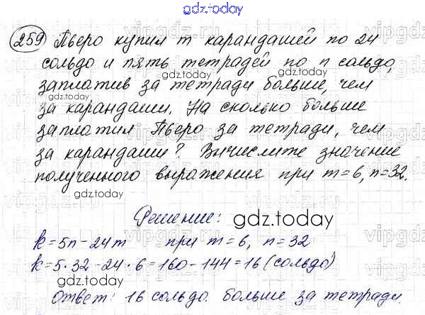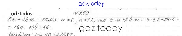 Ответы к §9. Числовые и буквенные выражения. Формулы Решение к главе 2. Сложение и вычитание натуральных чисел 259 Учебнику по Математике для 5 класса Мерзляк, Полонский Вентана-граф Алгоритм успеха 2016