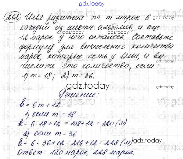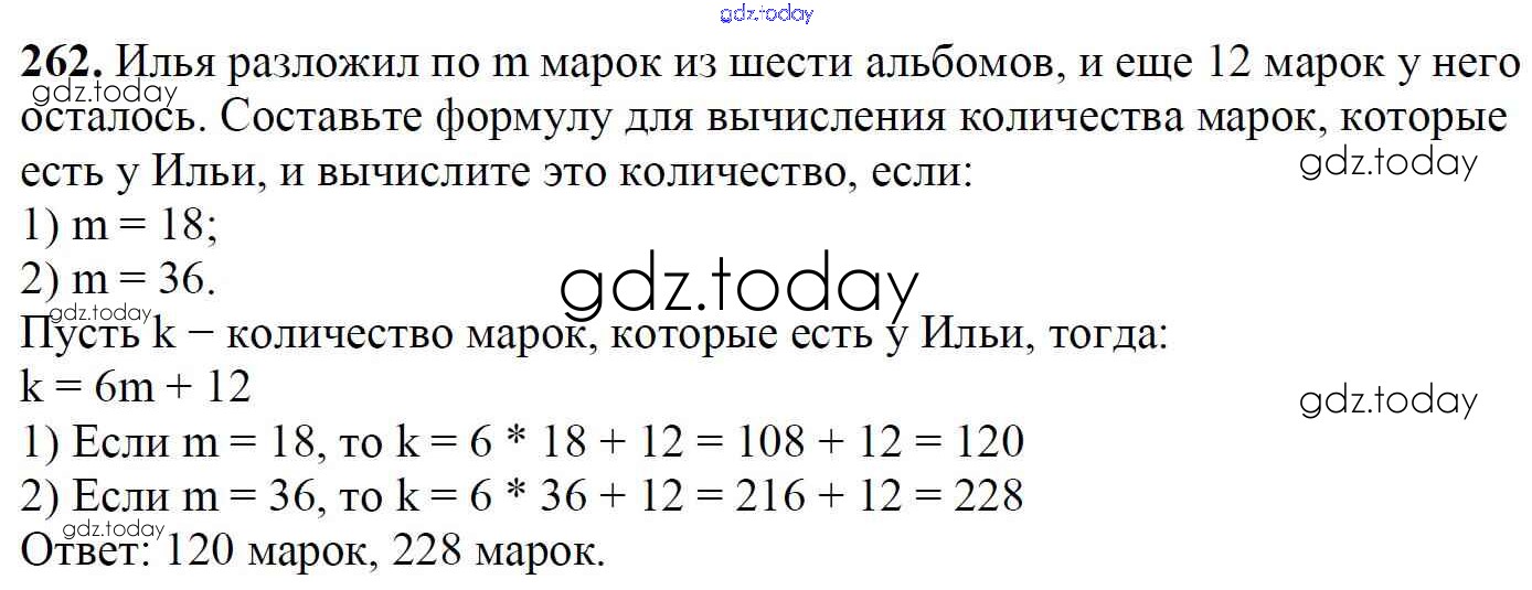 Ответы к §9. Числовые и буквенные выражения. Формулы Решение к главе 2. Сложение и вычитание натуральных чисел 262 Учебнику по Математике для 5 класса Мерзляк, Полонский Вентана-граф Алгоритм успеха 2016