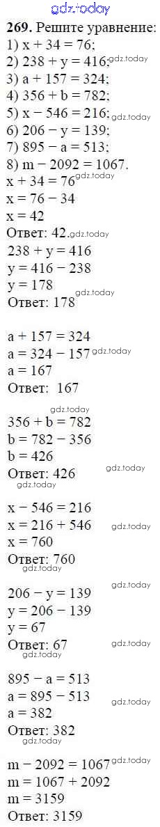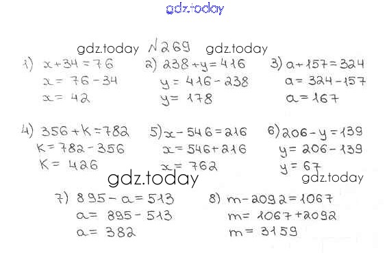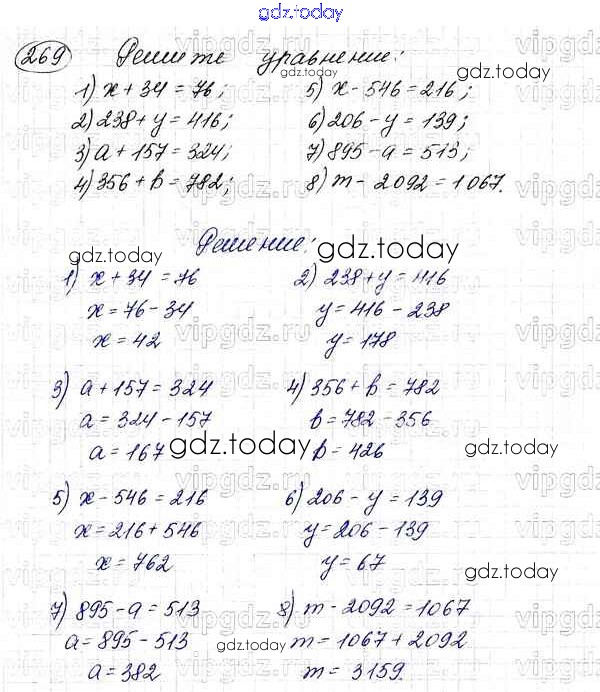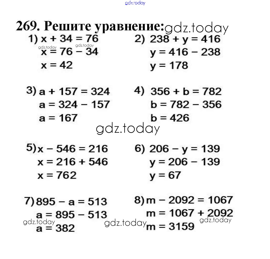 На страницах сайта gdz.today вы найдете учебный и вспомогательный материал, направленный на улучшения знаний школьной программы. ГДЗ - онлайн мир знаний §10. Уравнение Решение к главе 2. Сложение и вычитание натуральных чисел 269 Учебнику по Математике для 5 класса Мерзляк, Полонский Вентана-граф Алгоритм успеха 2016