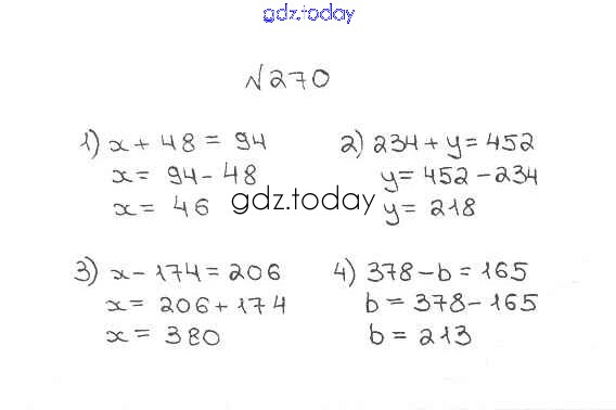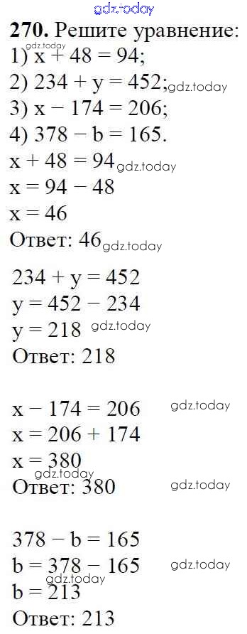 Ответы к §10. Уравнение Решение к главе 2. Сложение и вычитание натуральных чисел 270 Учебнику по Математике для 5 класса Мерзляк, Полонский Вентана-граф Алгоритм успеха 2016