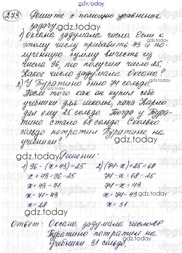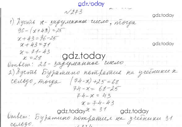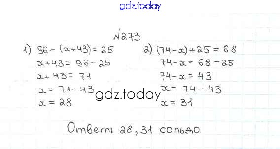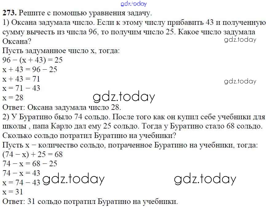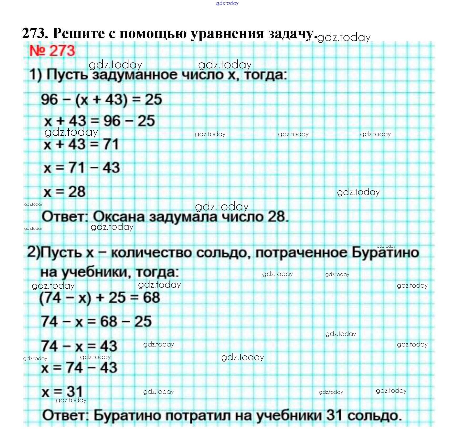 На страницах сайта gdz.today вы найдете учебный и вспомогательный материал, направленный на улучшения знаний школьной программы. ГДЗ - онлайн мир знаний §10. Уравнение Решение к главе 2. Сложение и вычитание натуральных чисел 273 Учебнику по Математике для 5 класса Мерзляк, Полонский Вентана-граф Алгоритм успеха 2016