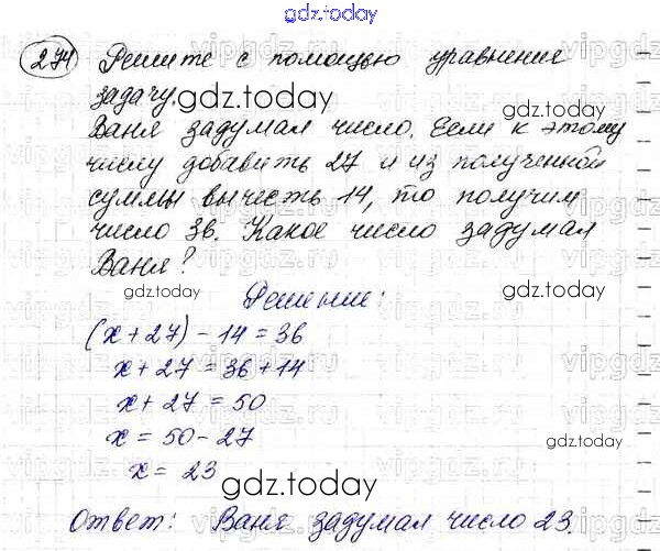 На страницах сайта gdz.today вы найдете учебный и вспомогательный материал, направленный на улучшения знаний школьной программы. ГДЗ - онлайн мир знаний §10. Уравнение Решение к главе 2. Сложение и вычитание натуральных чисел 274 Учебнику по Математике для 5 класса Мерзляк, Полонский Вентана-граф Алгоритм успеха 2016