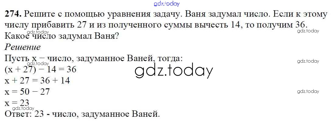 Ответы к §10. Уравнение Решение к главе 2. Сложение и вычитание натуральных чисел 274 Учебнику по Математике для 5 класса Мерзляк, Полонский Вентана-граф Алгоритм успеха 2016