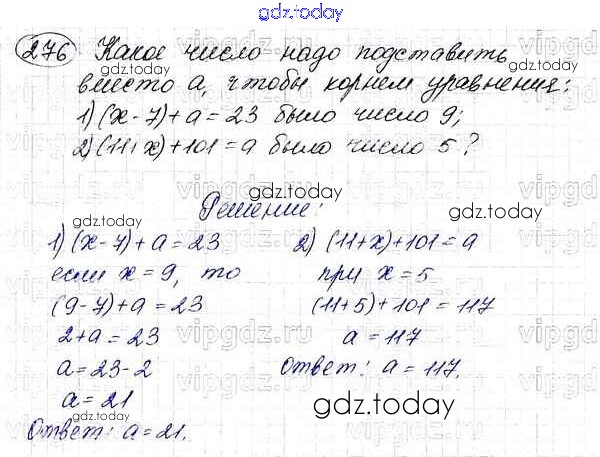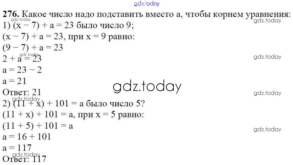 Ответы к §10. Уравнение Решение к главе 2. Сложение и вычитание натуральных чисел 276 Учебнику по Математике для 5 класса Мерзляк, Полонский Вентана-граф Алгоритм успеха 2016