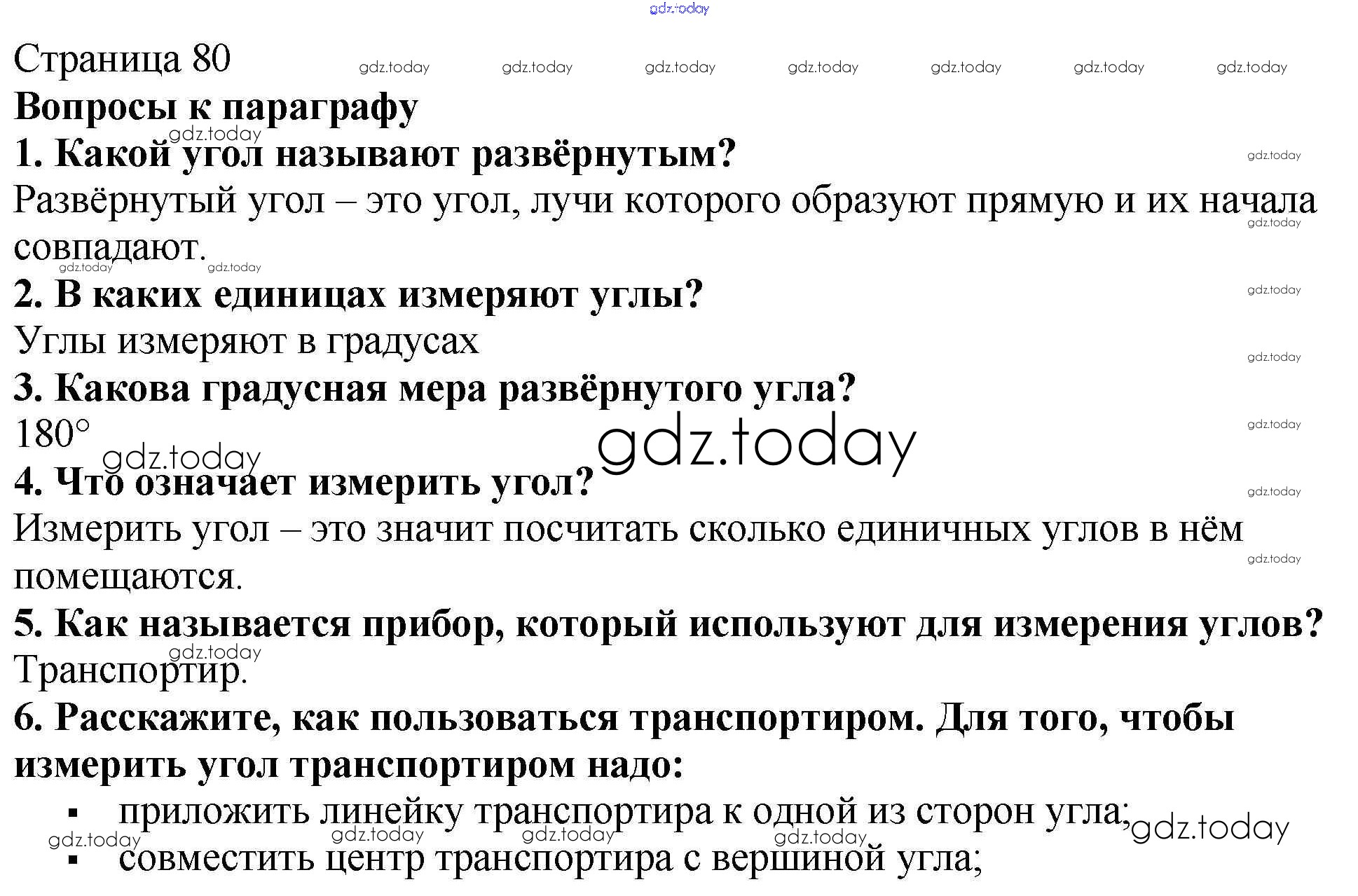 Ответы к Вопросы (страницы 80-81) §12. Виды углов. Измерение углов страницы 80-81 Учебнику по Математике для 5 класса Мерзляк, Полонский Вентана-граф Алгоритм успеха 2016