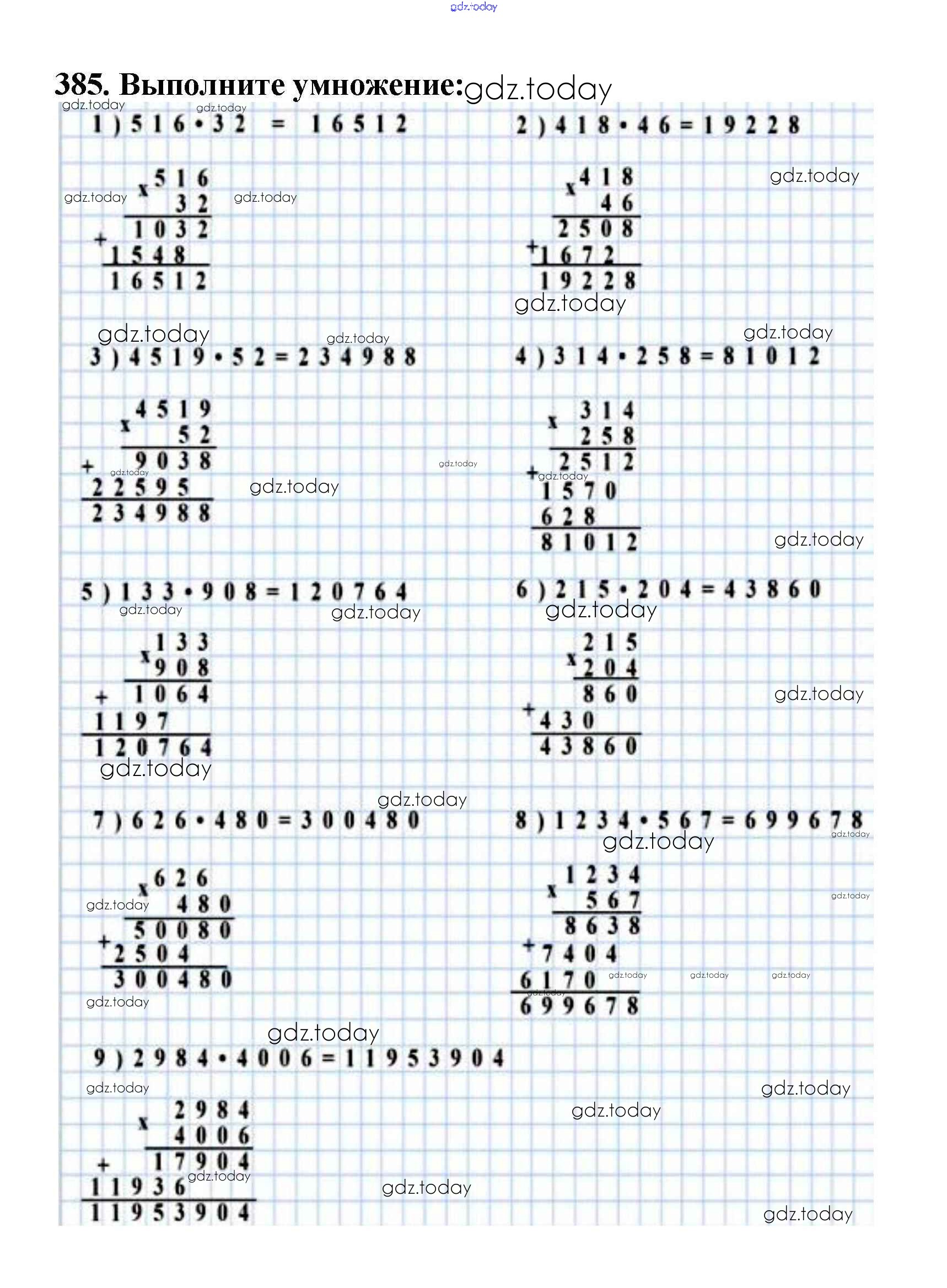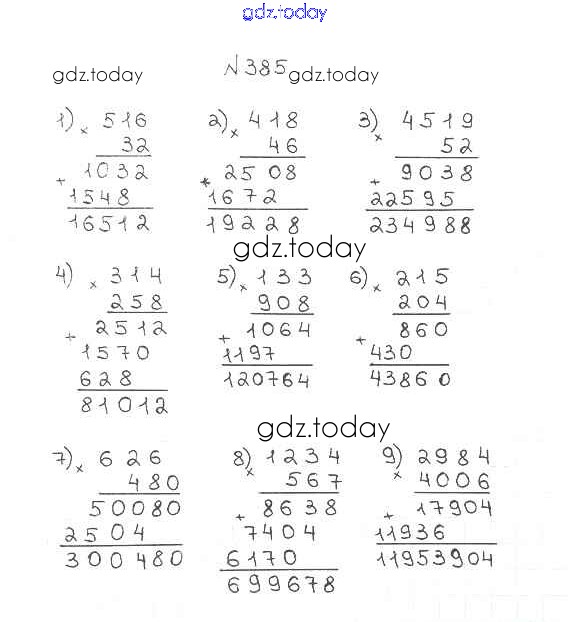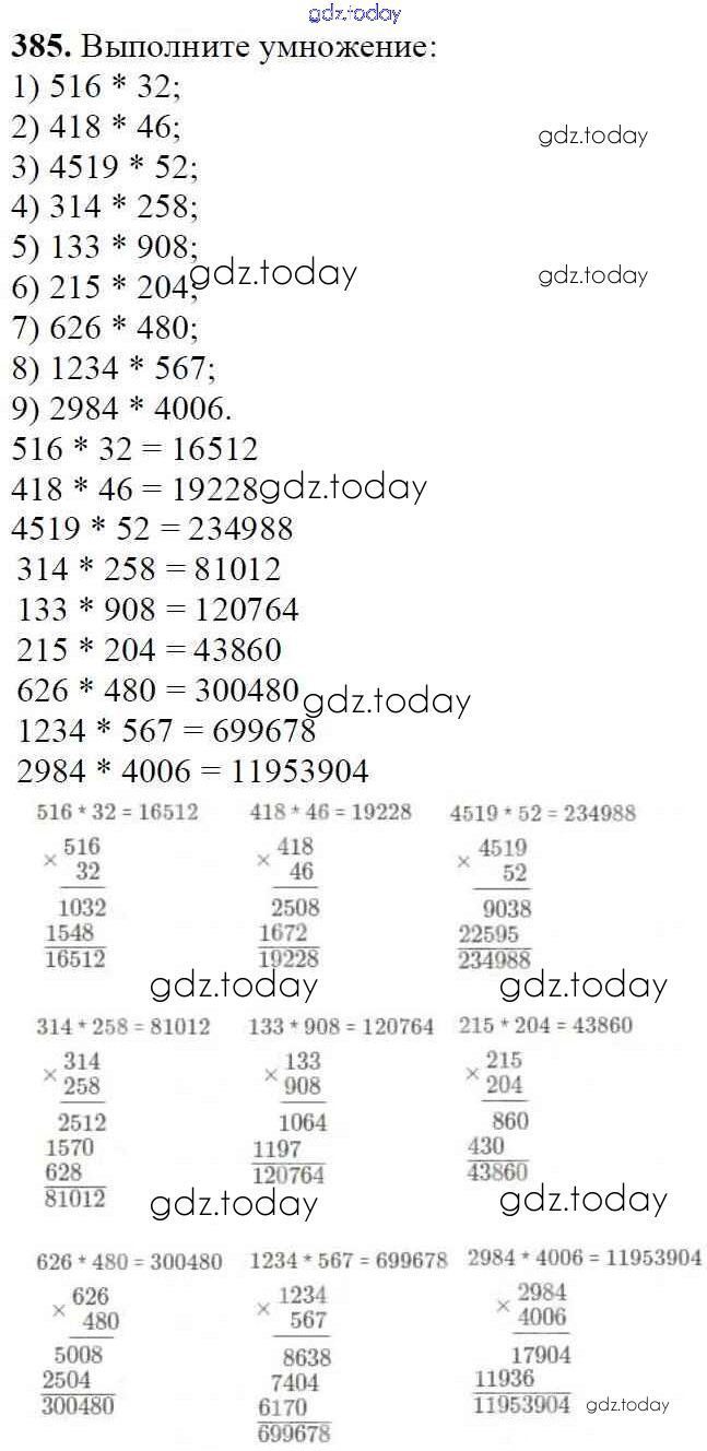 Ответы к §16. Умножение. Переместительное свойство умножения Решение к главе 3. Умножение и деление натуральных чисел 385 Учебнику по Математике для 5 класса Мерзляк, Полонский Вентана-граф Алгоритм успеха 2016