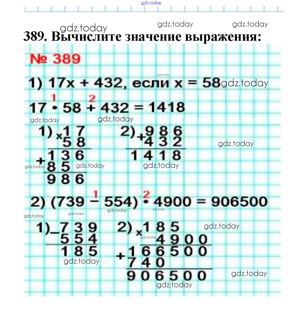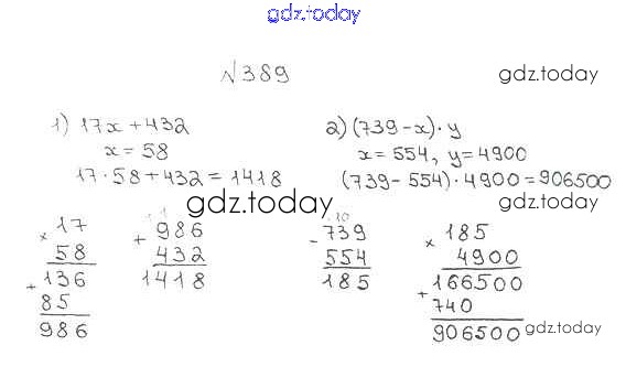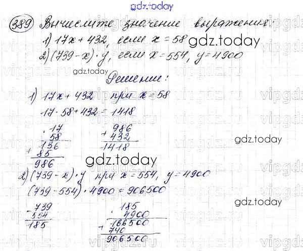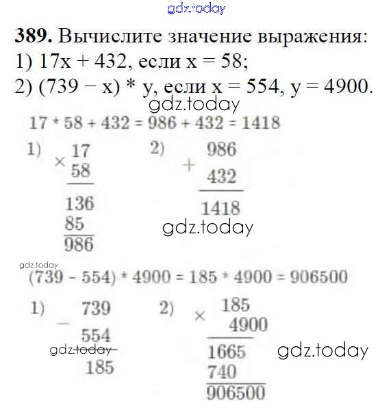 Ответы к §16. Умножение. Переместительное свойство умножения Решение к главе 3. Умножение и деление натуральных чисел 389 Учебнику по Математике для 5 класса Мерзляк, Полонский Вентана-граф Алгоритм успеха 2016