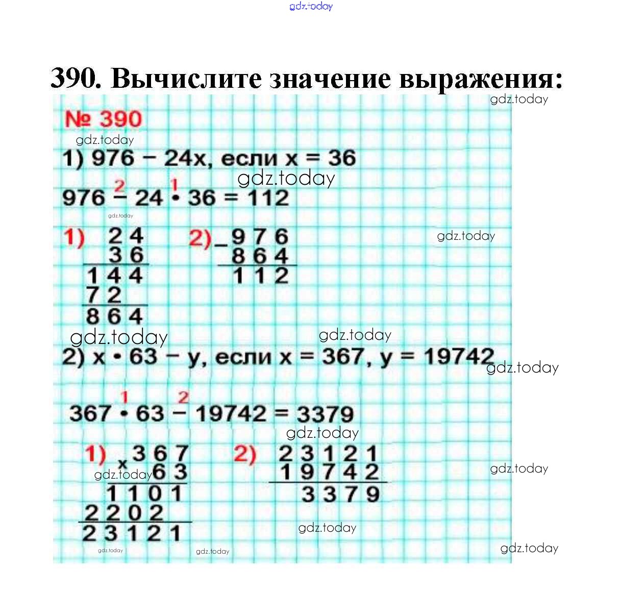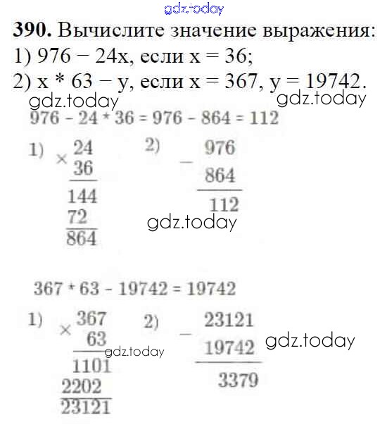 Ответы к §16. Умножение. Переместительное свойство умножения Решение к главе 3. Умножение и деление натуральных чисел 390 Учебнику по Математике для 5 класса Мерзляк, Полонский Вентана-граф Алгоритм успеха 2016