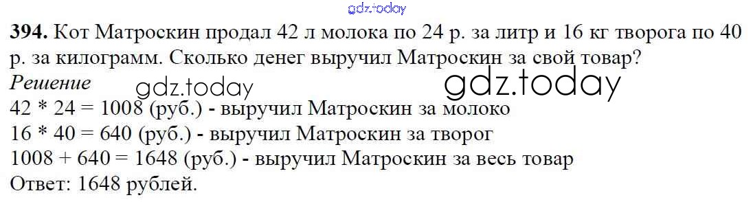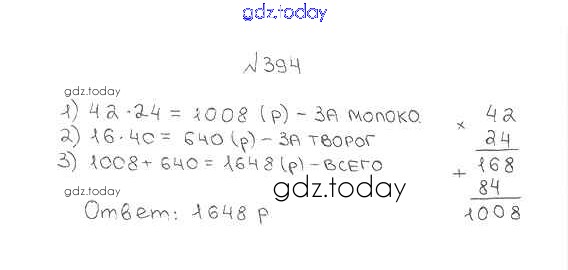 Ответы к §16. Умножение. Переместительное свойство умножения Решение к главе 3. Умножение и деление натуральных чисел 394 Учебнику по Математике для 5 класса Мерзляк, Полонский Вентана-граф Алгоритм успеха 2016