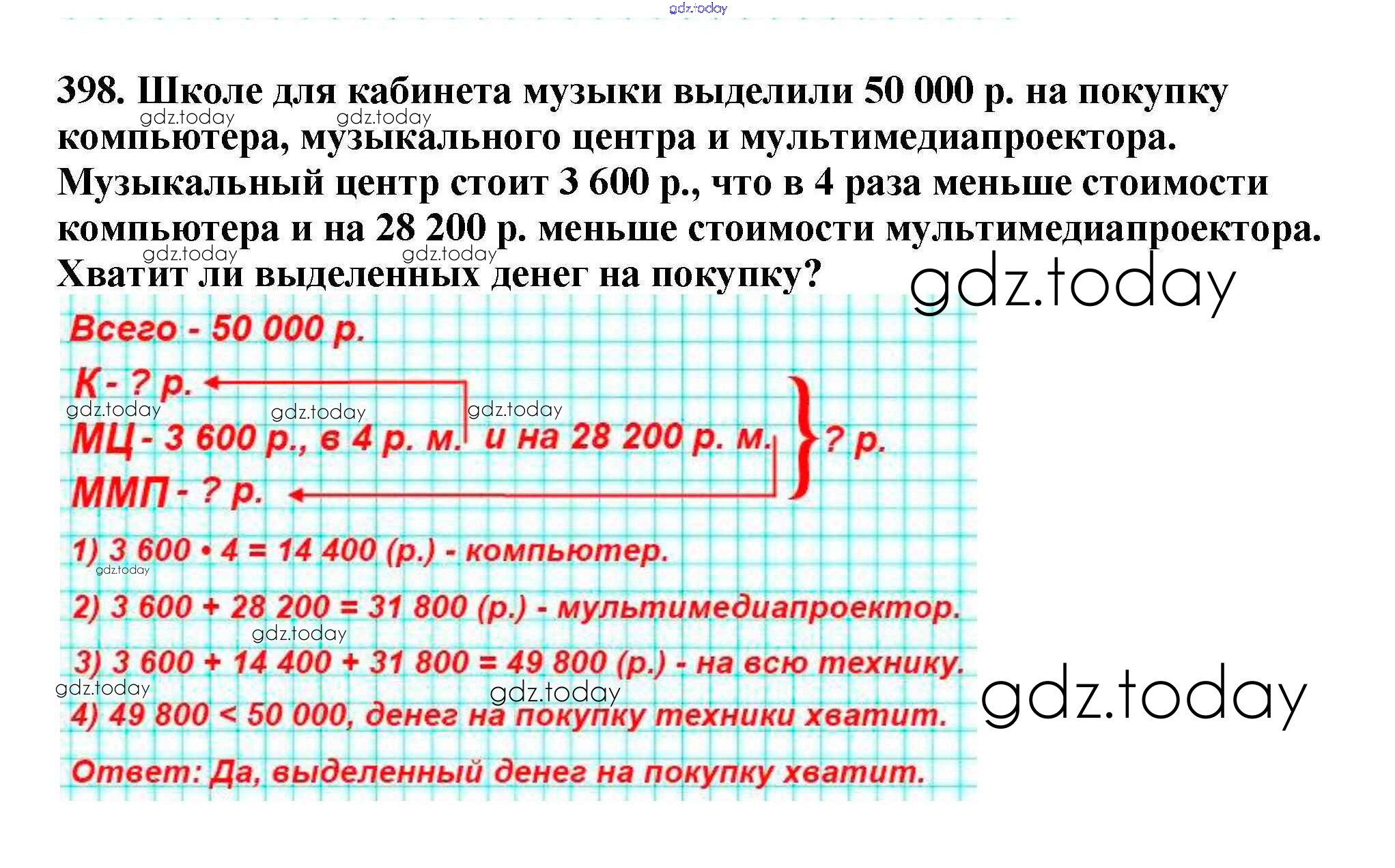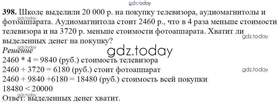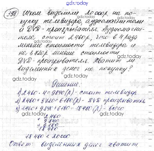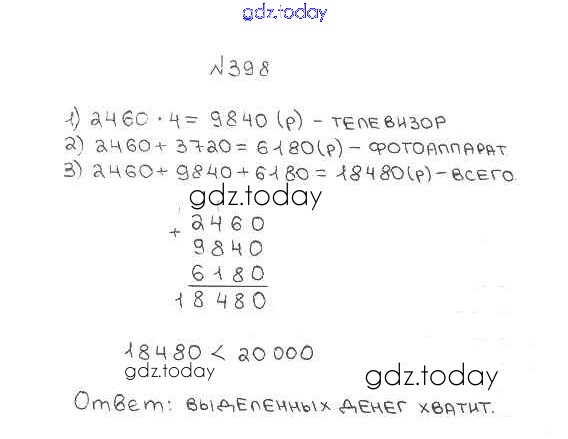 Ответы к §16. Умножение. Переместительное свойство умножения Решение к главе 3. Умножение и деление натуральных чисел 398 Учебнику по Математике для 5 класса Мерзляк, Полонский Вентана-граф Алгоритм успеха 2016