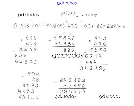 Ответы к §16. Умножение. Переместительное свойство умножения Решение к главе 3. Умножение и деление натуральных чисел 399 Учебнику по Математике для 5 класса Мерзляк, Полонский Вентана-граф Алгоритм успеха 2016