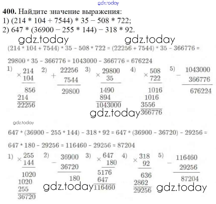 Ответы к §16. Умножение. Переместительное свойство умножения Решение к главе 3. Умножение и деление натуральных чисел 400 Учебнику по Математике для 5 класса Мерзляк, Полонский Вентана-граф Алгоритм успеха 2016