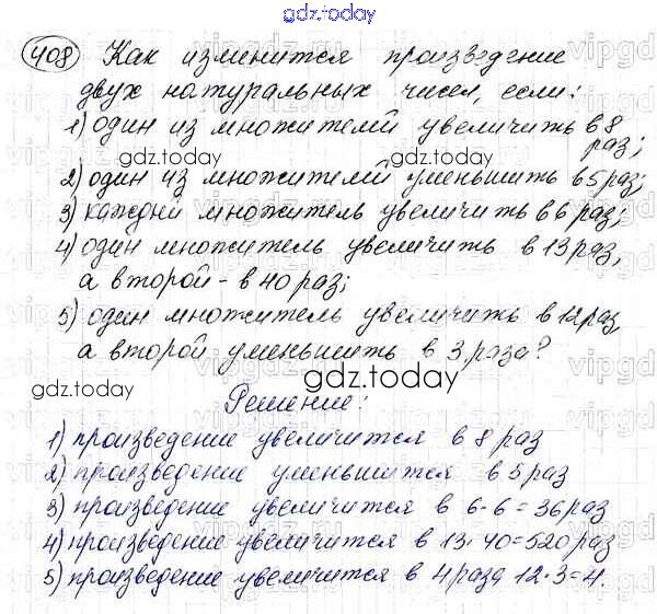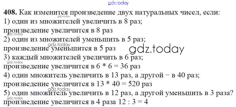 Ответы к §16. Умножение. Переместительное свойство умножения Решение к главе 3. Умножение и деление натуральных чисел 408 Учебнику по Математике для 5 класса Мерзляк, Полонский Вентана-граф Алгоритм успеха 2016