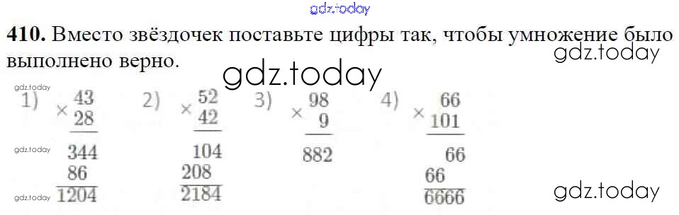 Ответы к §16. Умножение. Переместительное свойство умножения Решение к главе 3. Умножение и деление натуральных чисел 410 Учебнику по Математике для 5 класса Мерзляк, Полонский Вентана-граф Алгоритм успеха 2016