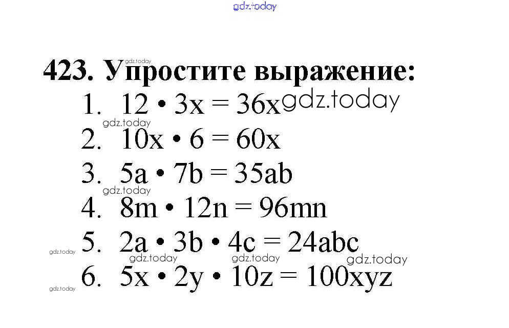 На страницах сайта gdz.today вы найдете учебный и вспомогательный материал, направленный на улучшения знаний школьной программы. ГДЗ - онлайн мир знаний §17. Сочетательное и распределительное свойства умножения Решение к главе 3. Умножение и деление натуральных чисел 423 Учебнику по Математике для 5 класса Мерзляк, Полонский Вентана-граф Алгоритм успеха 2016