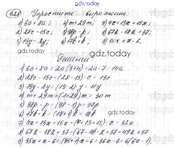 Ответы к §17. Сочетательное и распределительное свойства умножения Решение к главе 3. Умножение и деление натуральных чисел 428 Учебнику по Математике для 5 класса Мерзляк, Полонский Вентана-граф Алгоритм успеха 2016