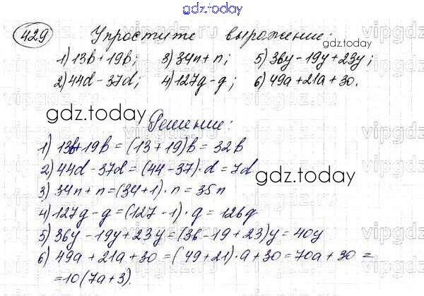 На страницах сайта gdz.today вы найдете учебный и вспомогательный материал, направленный на улучшения знаний школьной программы. ГДЗ - онлайн мир знаний §17. Сочетательное и распределительное свойства умножения Решение к главе 3. Умножение и деление натуральных чисел 429 Учебнику по Математике для 5 класса Мерзляк, Полонский Вентана-граф Алгоритм успеха 2016