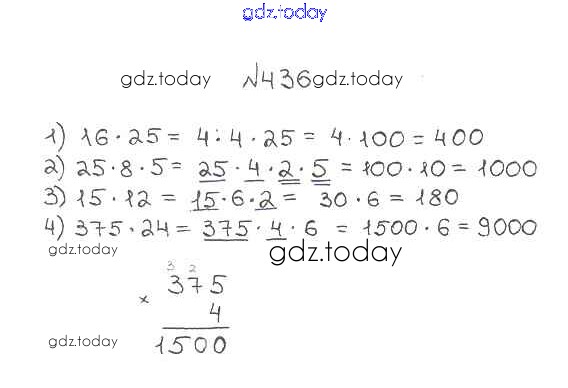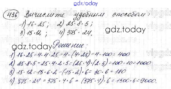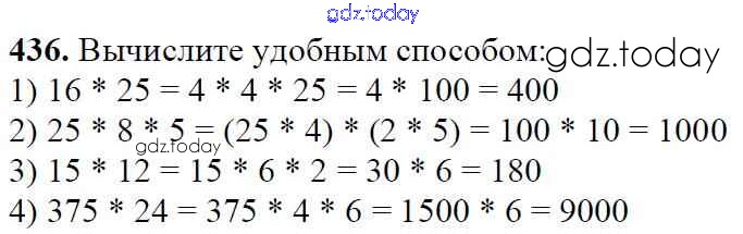 Ответы к §17. Сочетательное и распределительное свойства умножения Решение к главе 3. Умножение и деление натуральных чисел 436 Учебнику по Математике для 5 класса Мерзляк, Полонский Вентана-граф Алгоритм успеха 2016