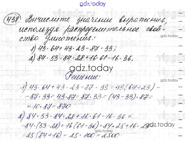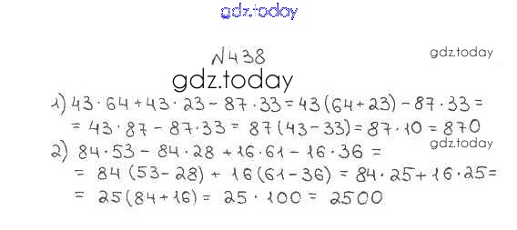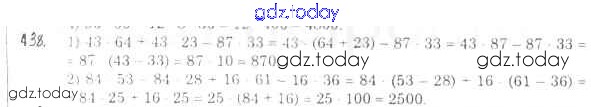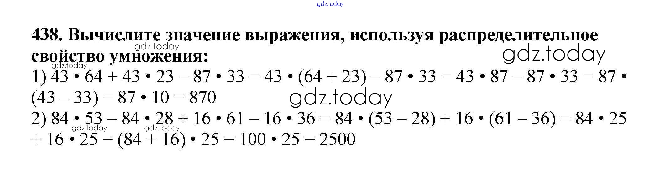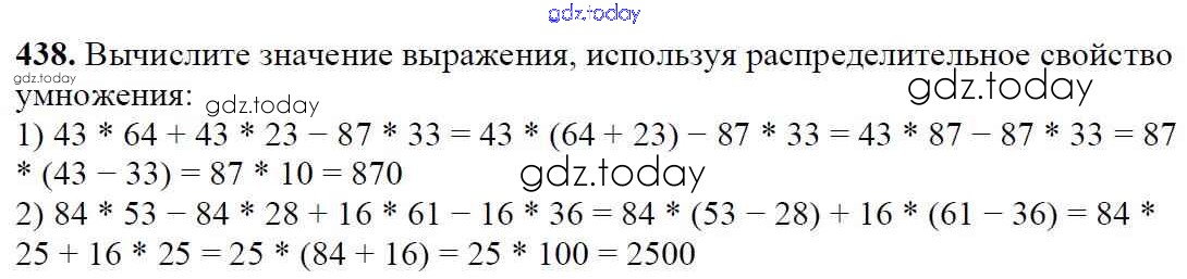 Ответы к §17. Сочетательное и распределительное свойства умножения Решение к главе 3. Умножение и деление натуральных чисел 438 Учебнику по Математике для 5 класса Мерзляк, Полонский Вентана-граф Алгоритм успеха 2016