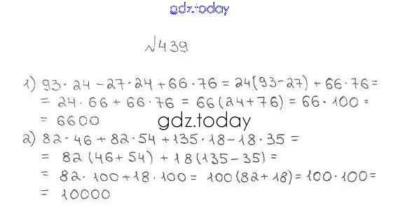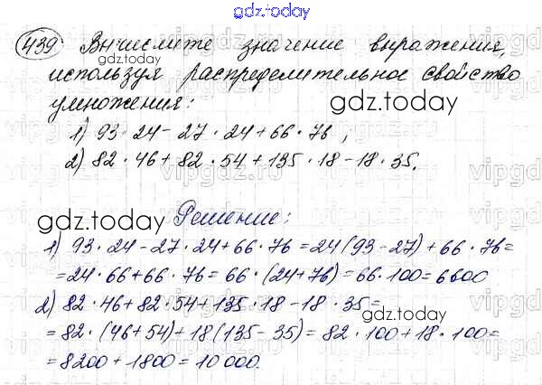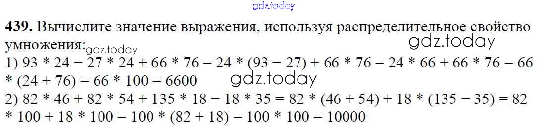 Ответы к §17. Сочетательное и распределительное свойства умножения Решение к главе 3. Умножение и деление натуральных чисел 439 Учебнику по Математике для 5 класса Мерзляк, Полонский Вентана-граф Алгоритм успеха 2016