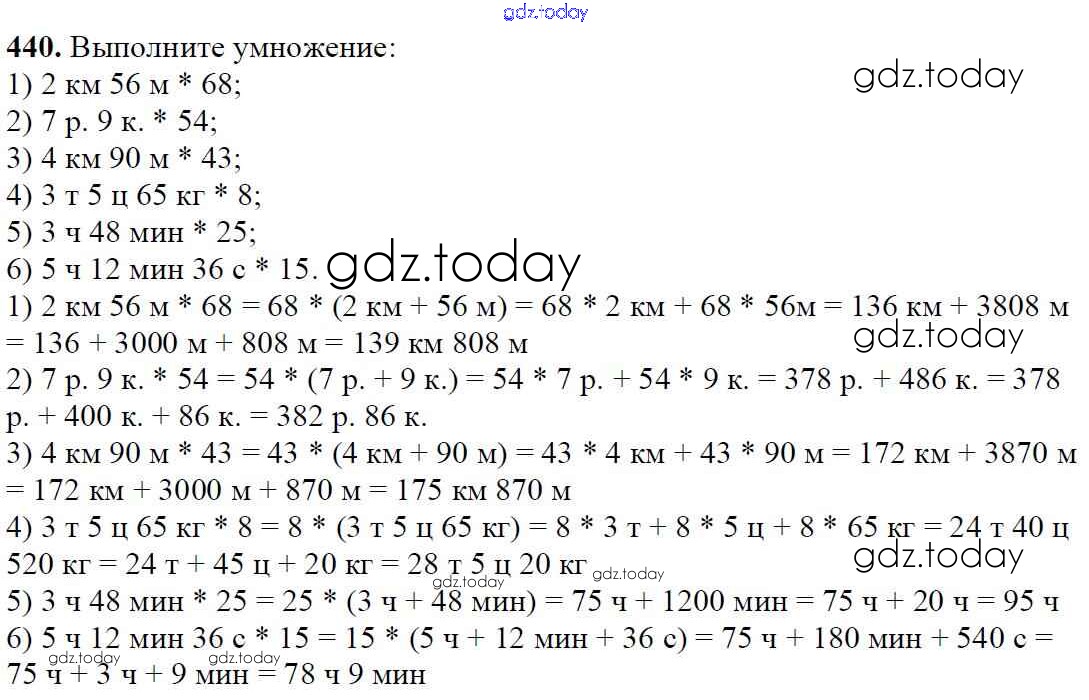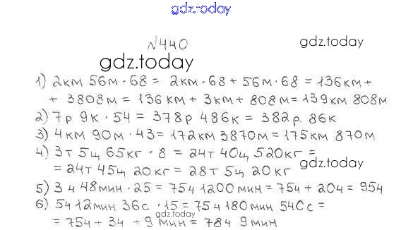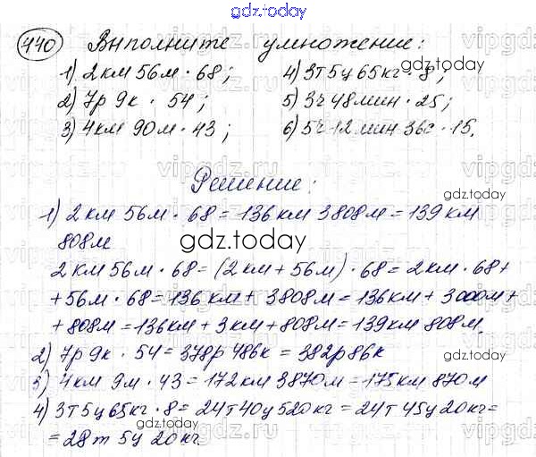 Ответы к §17. Сочетательное и распределительное свойства умножения Решение к главе 3. Умножение и деление натуральных чисел 440 Учебнику по Математике для 5 класса Мерзляк, Полонский Вентана-граф Алгоритм успеха 2016