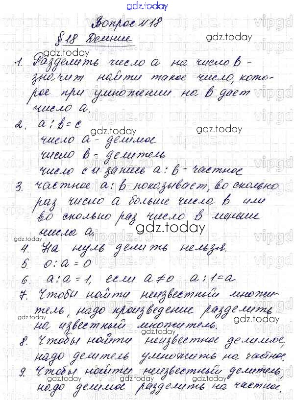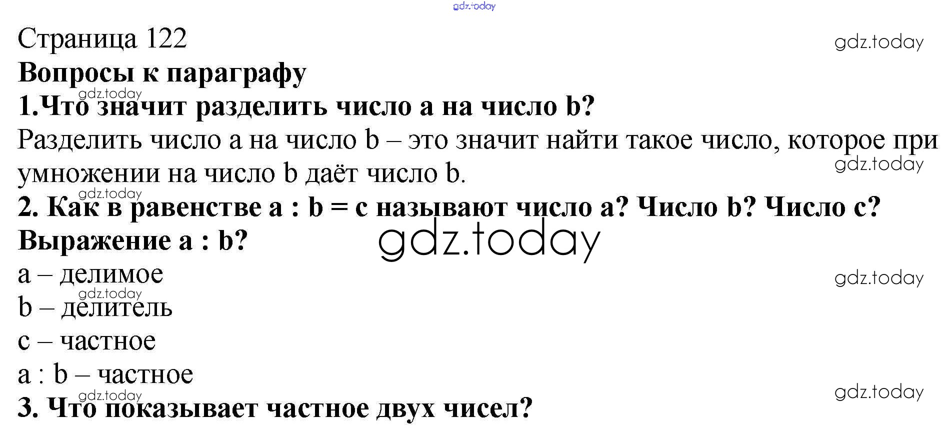 На страницах сайта gdz.today вы найдете учебный и вспомогательный материал, направленный на улучшения знаний школьной программы. ГДЗ - онлайн мир знаний Вопросы (страница 122) §18. Деление страница 122 Учебнику по Математике для 5 класса Мерзляк, Полонский Вентана-граф Алгоритм успеха 2016