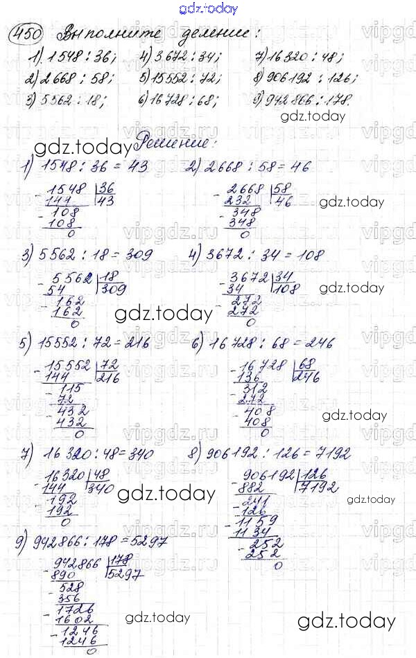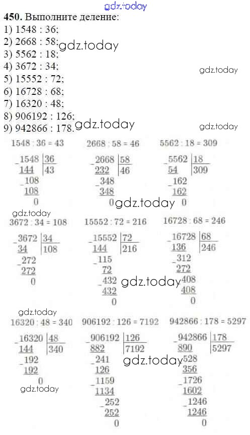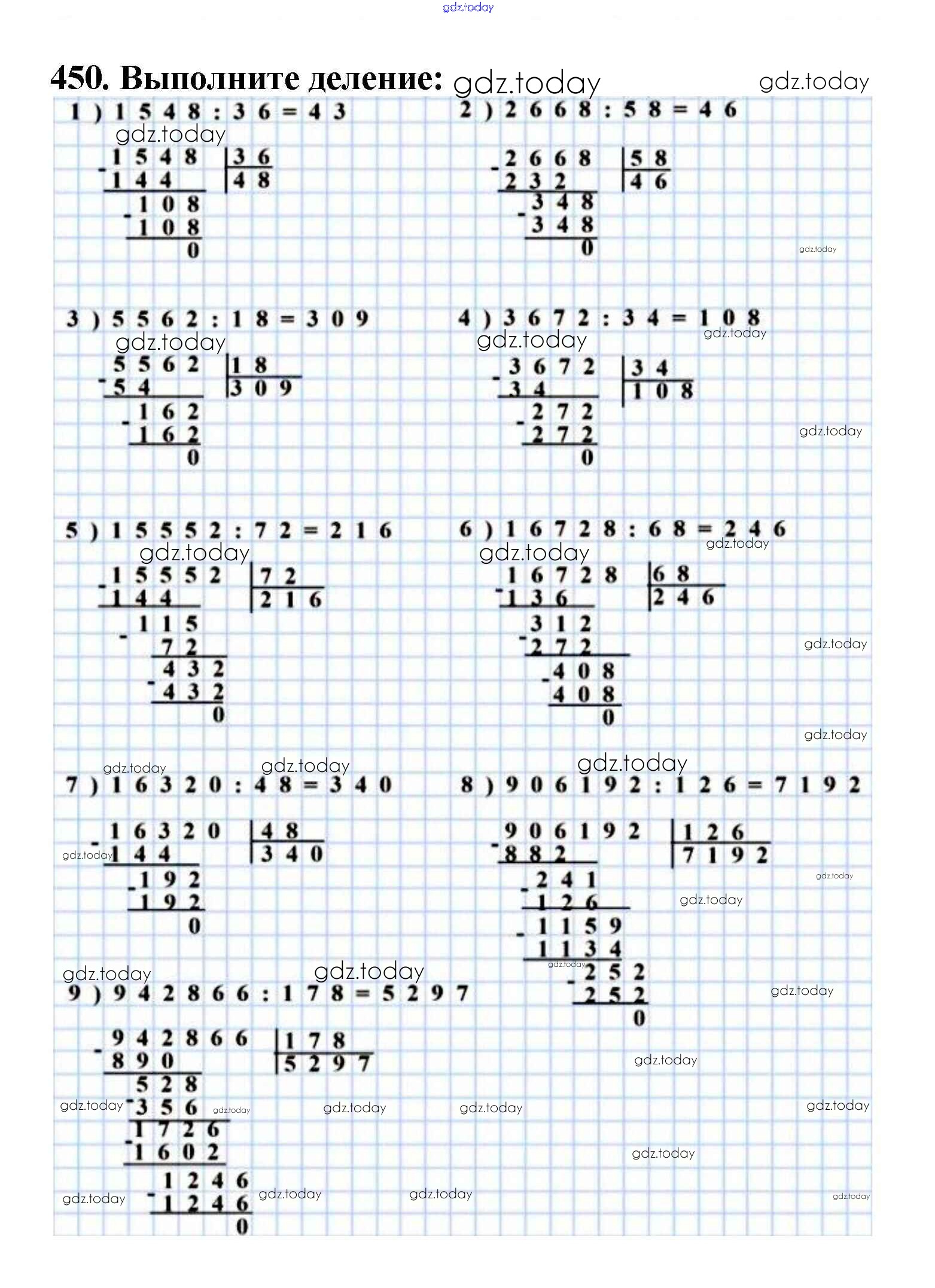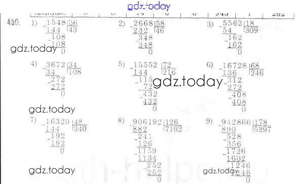 Ответы к §18. Деление Решение к главе 3. Умножение и деление натуральных чисел 450 Учебнику по Математике для 5 класса Мерзляк, Полонский Вентана-граф Алгоритм успеха 2016