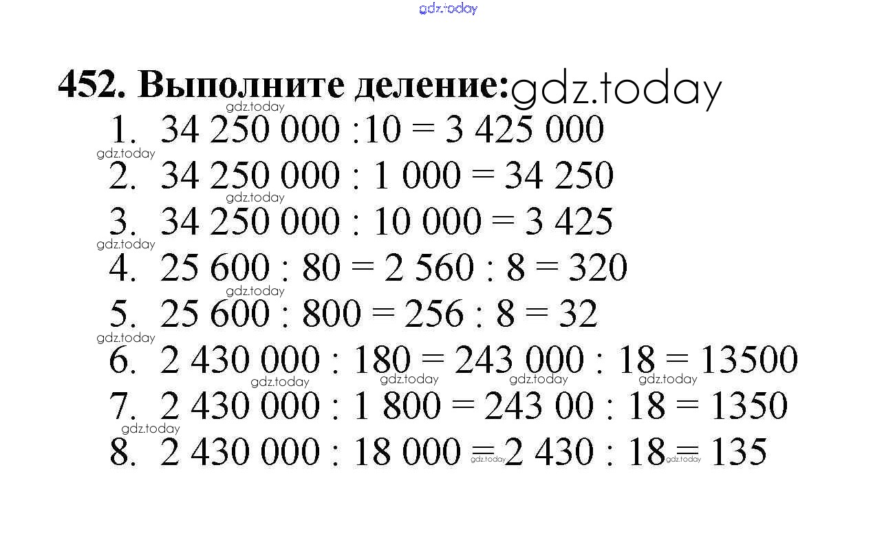 На страницах сайта gdz.today вы найдете учебный и вспомогательный материал, направленный на улучшения знаний школьной программы. ГДЗ - онлайн мир знаний §18. Деление Решение к главе 3. Умножение и деление натуральных чисел 452 Учебнику по Математике для 5 класса Мерзляк, Полонский Вентана-граф Алгоритм успеха 2016