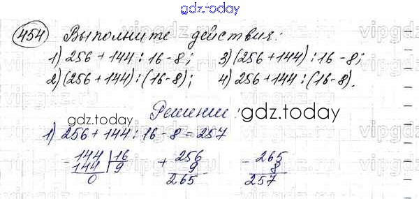 На страницах сайта gdz.today вы найдете учебный и вспомогательный материал, направленный на улучшения знаний школьной программы. ГДЗ - онлайн мир знаний §18. Деление Решение к главе 3. Умножение и деление натуральных чисел 454 Учебнику по Математике для 5 класса Мерзляк, Полонский Вентана-граф Алгоритм успеха 2016