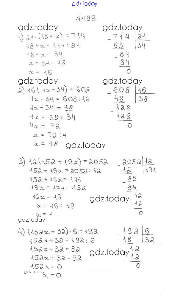 На страницах сайта gdz.today вы найдете учебный и вспомогательный материал, направленный на улучшения знаний школьной программы. ГДЗ - онлайн мир знаний §18. Деление Решение к главе 3. Умножение и деление натуральных чисел 489 Учебнику по Математике для 5 класса Мерзляк, Полонский Вентана-граф Алгоритм успеха 2016