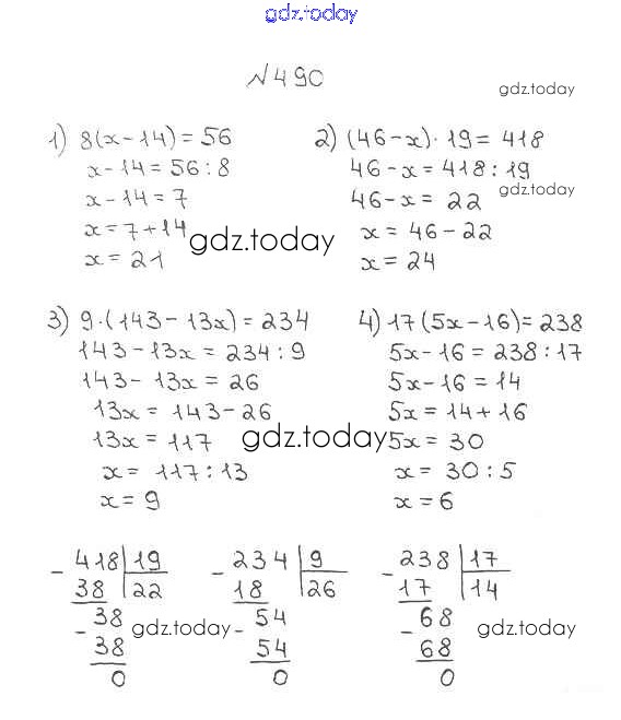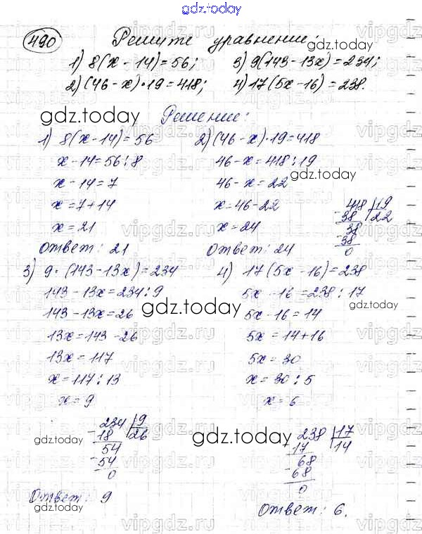 Ответы к §18. Деление Решение к главе 3. Умножение и деление натуральных чисел 490 Учебнику по Математике для 5 класса Мерзляк, Полонский Вентана-граф Алгоритм успеха 2016