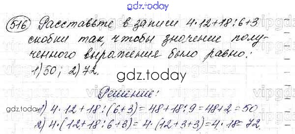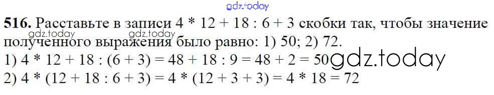 Ответы к §18. Деление Решение к главе 3. Умножение и деление натуральных чисел 516 Учебнику по Математике для 5 класса Мерзляк, Полонский Вентана-граф Алгоритм успеха 2016