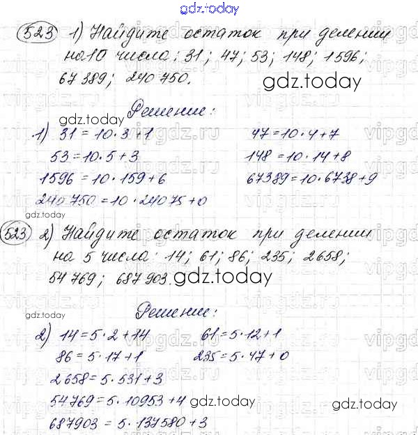 На страницах сайта gdz.today вы найдете учебный и вспомогательный материал, направленный на улучшения знаний школьной программы. ГДЗ - онлайн мир знаний §19. Деление с остатком Решение к главе 3. Умножение и деление натуральных чисел 523 Учебнику по Математике для 5 класса Мерзляк, Полонский Вентана-граф Алгоритм успеха 2016
