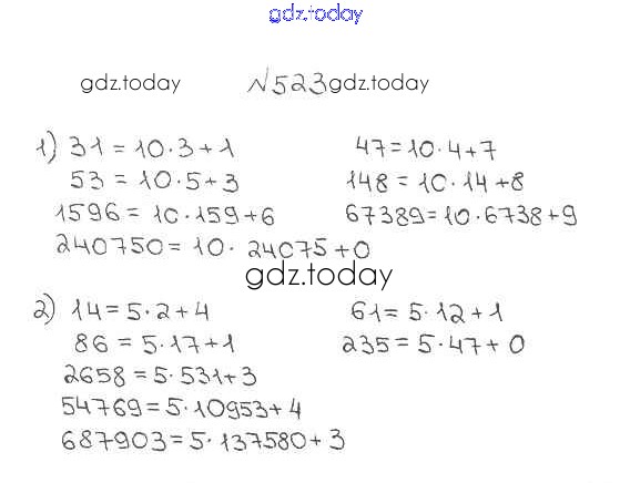 Ответы к §19. Деление с остатком Решение к главе 3. Умножение и деление натуральных чисел 523 Учебнику по Математике для 5 класса Мерзляк, Полонский Вентана-граф Алгоритм успеха 2016
