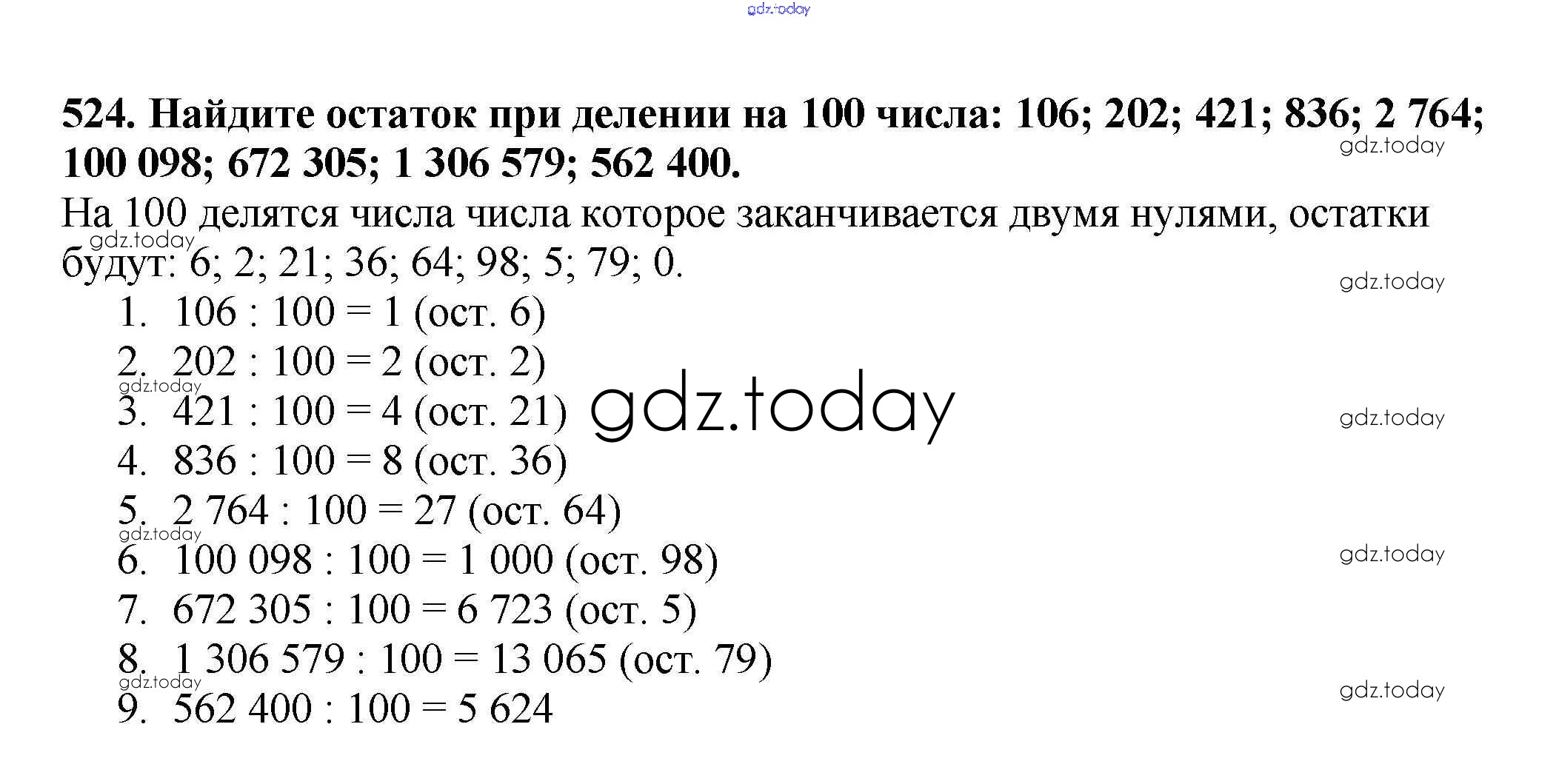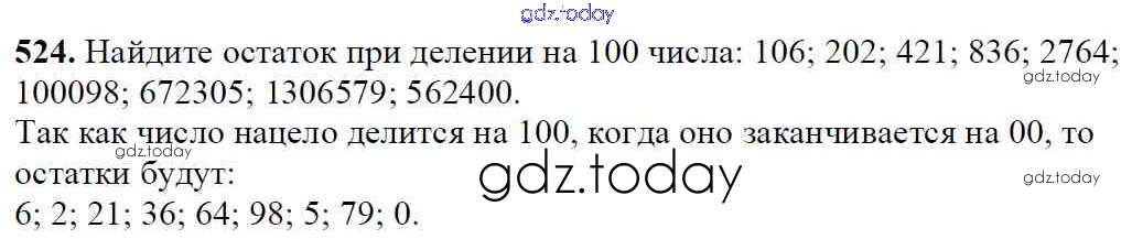 Ответы к §19. Деление с остатком Решение к главе 3. Умножение и деление натуральных чисел 524 Учебнику по Математике для 5 класса Мерзляк, Полонский Вентана-граф Алгоритм успеха 2016