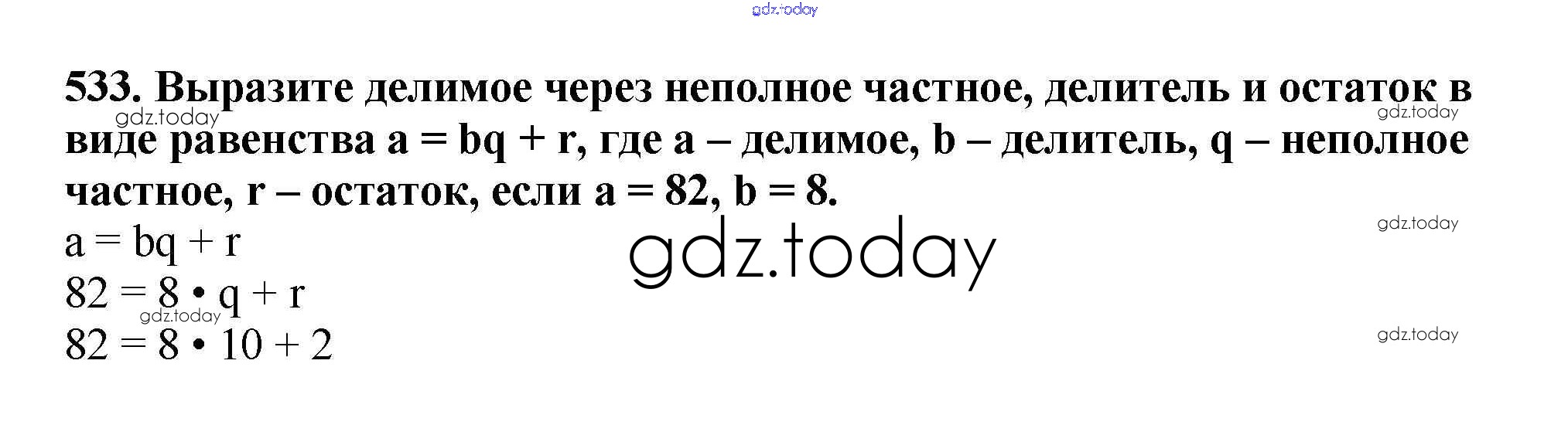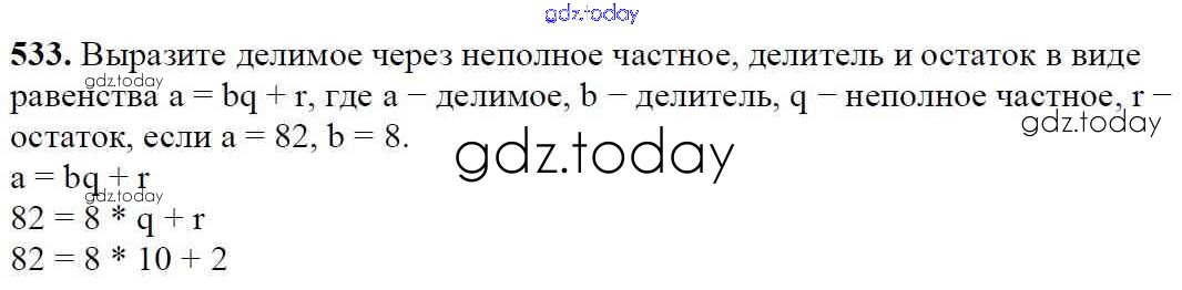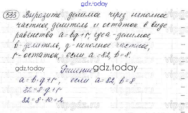 На страницах сайта gdz.today вы найдете учебный и вспомогательный материал, направленный на улучшения знаний школьной программы. ГДЗ - онлайн мир знаний §19. Деление с остатком Решение к главе 3. Умножение и деление натуральных чисел 533 Учебнику по Математике для 5 класса Мерзляк, Полонский Вентана-граф Алгоритм успеха 2016