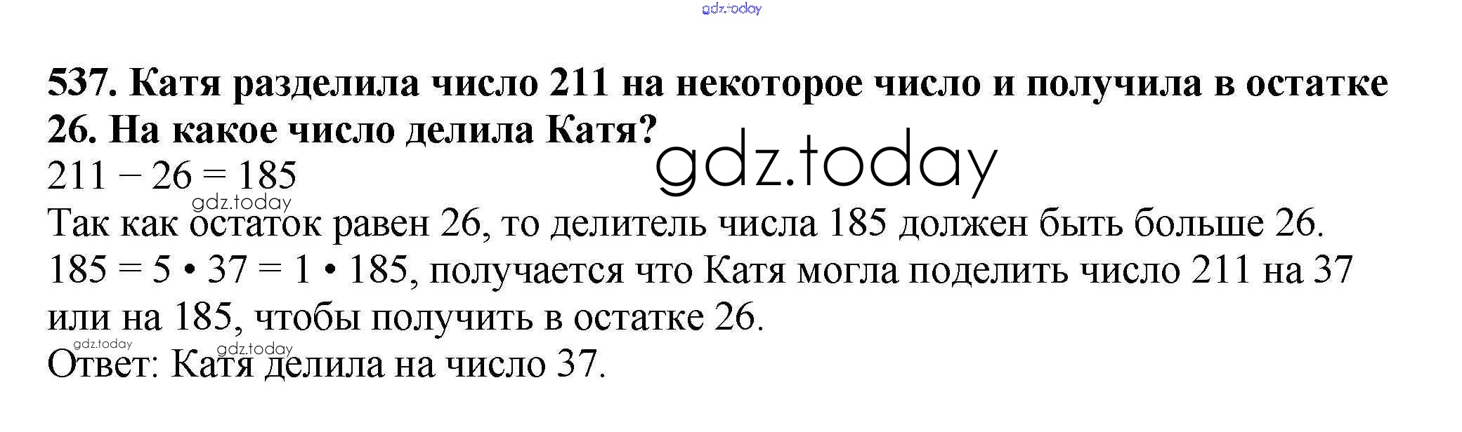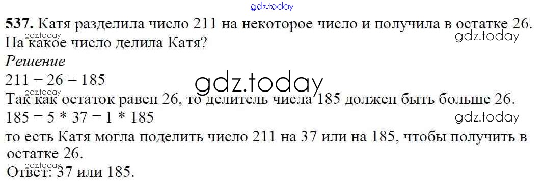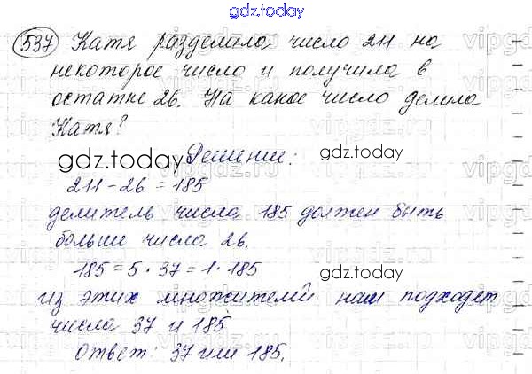 Ответы к §19. Деление с остатком Решение к главе 3. Умножение и деление натуральных чисел 537 Учебнику по Математике для 5 класса Мерзляк, Полонский Вентана-граф Алгоритм успеха 2016