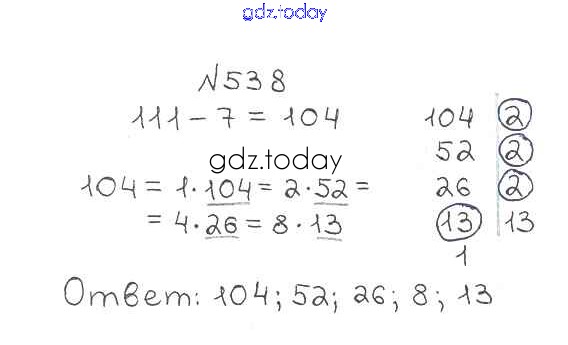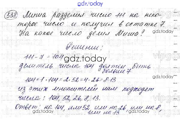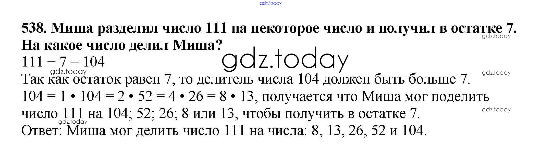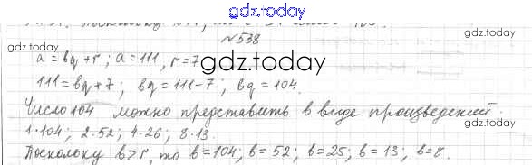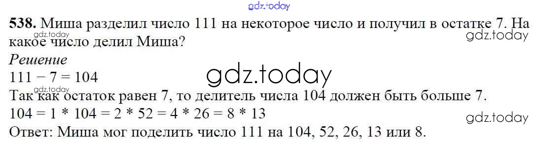 Ответы к §19. Деление с остатком Решение к главе 3. Умножение и деление натуральных чисел 538 Учебнику по Математике для 5 класса Мерзляк, Полонский Вентана-граф Алгоритм успеха 2016