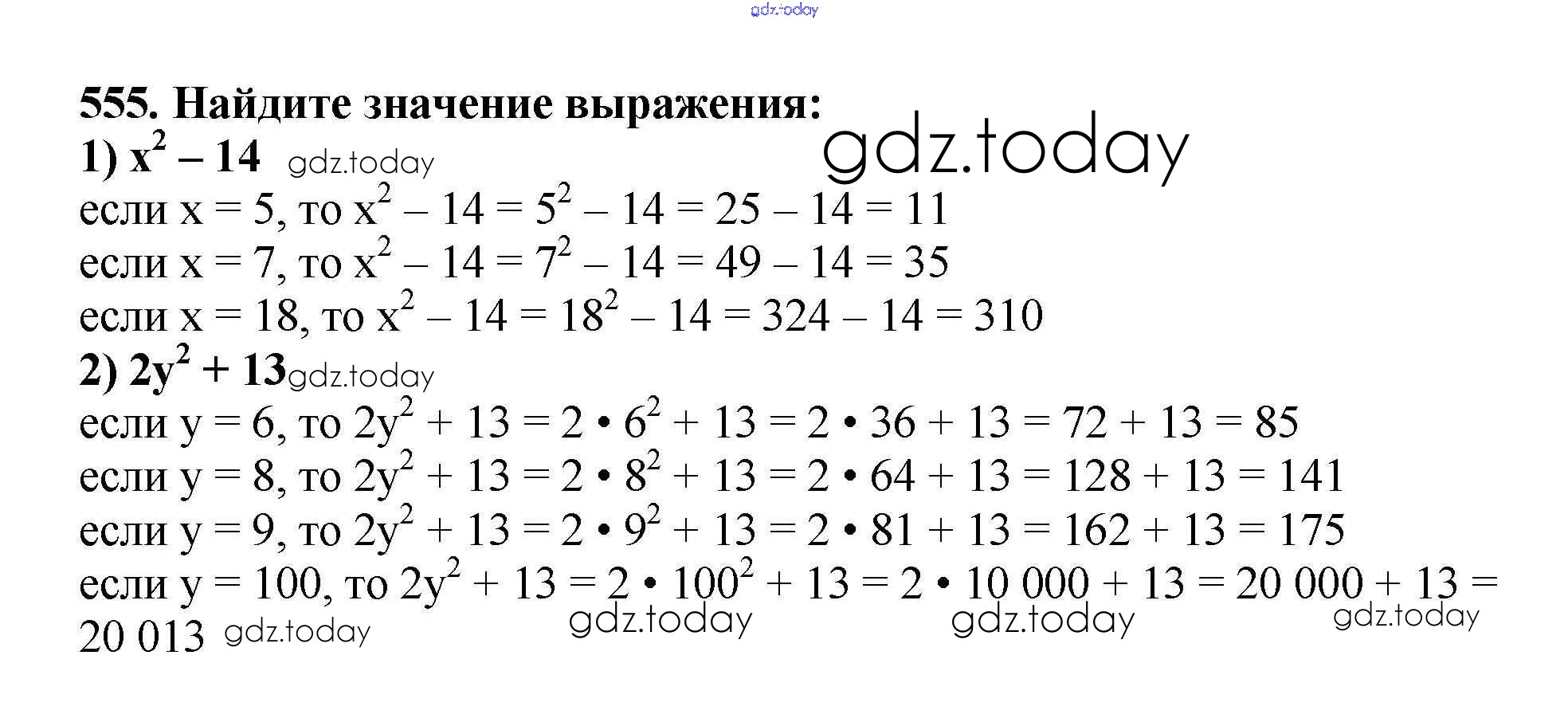 На страницах сайта gdz.today вы найдете учебный и вспомогательный материал, направленный на улучшения знаний школьной программы. ГДЗ - онлайн мир знаний §20. Степень числа Решение к главе 3. Умножение и деление натуральных чисел 555 Учебнику по Математике для 5 класса Мерзляк, Полонский Вентана-граф Алгоритм успеха 2016