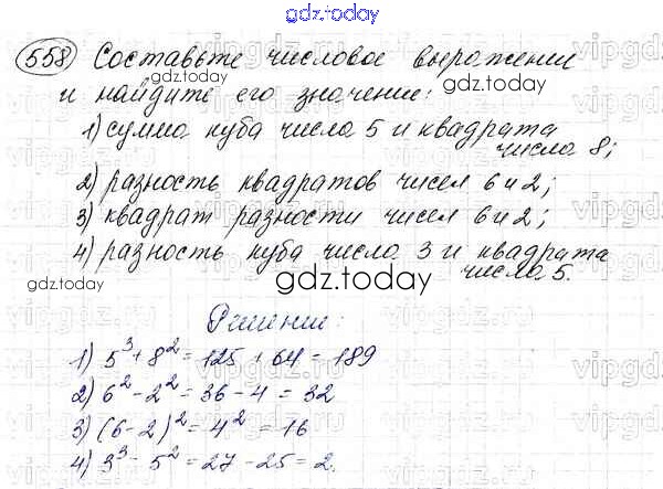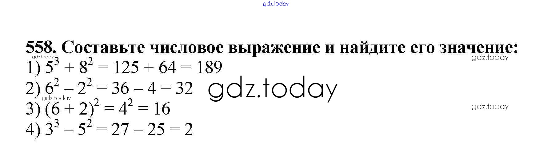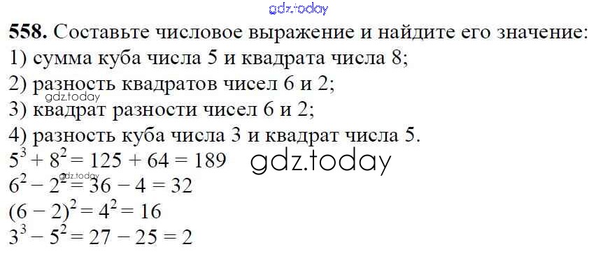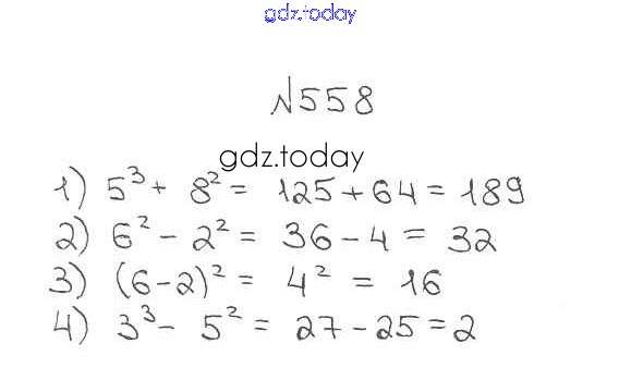 Ответы к §20. Степень числа Решение к главе 3. Умножение и деление натуральных чисел 558 Учебнику по Математике для 5 класса Мерзляк, Полонский Вентана-граф Алгоритм успеха 2016