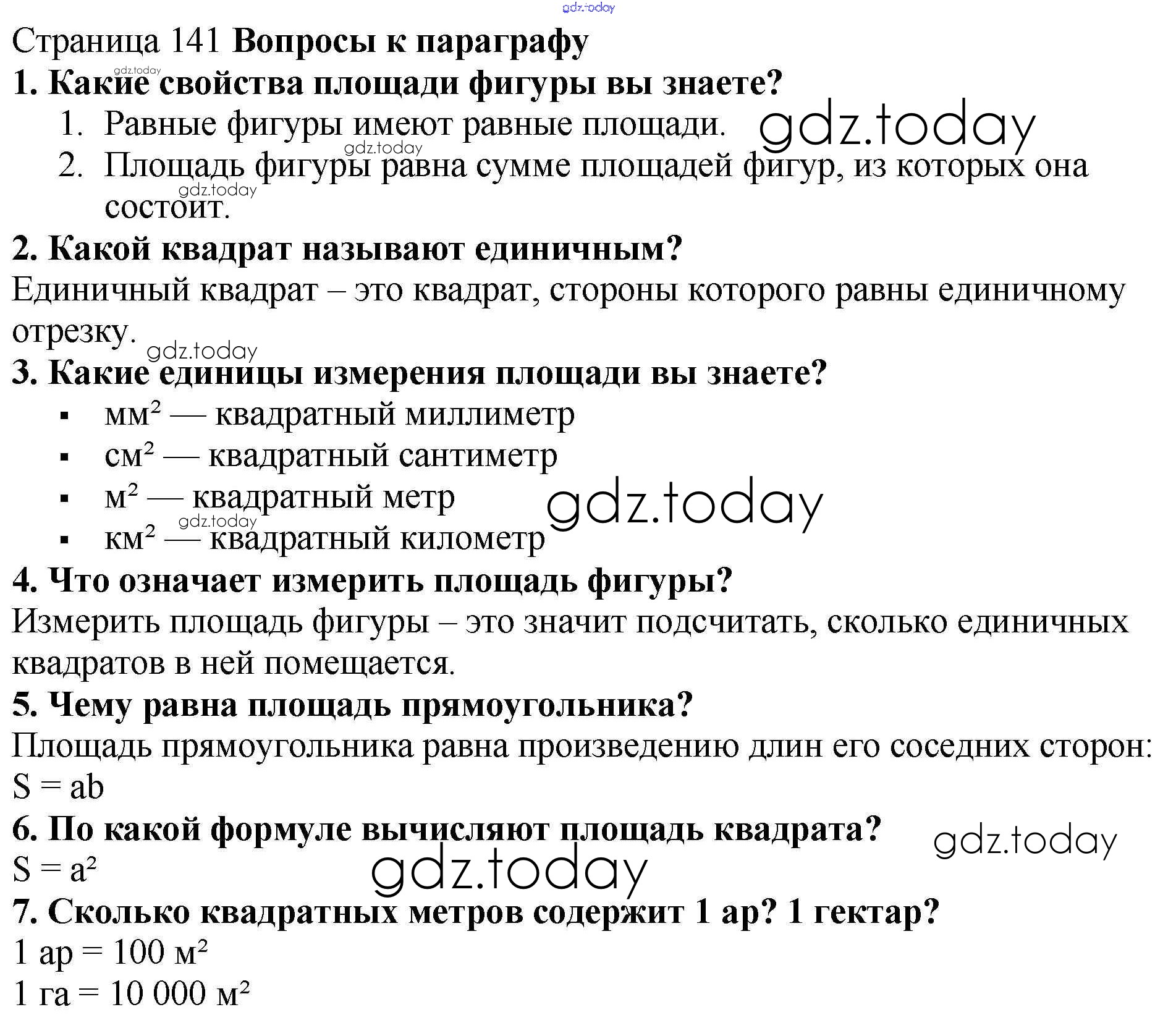 Ответы к Вопросы (страница 141) §21. Площадь. Площадь прямоугольника страница 141 Учебнику по Математике для 5 класса Мерзляк, Полонский Вентана-граф Алгоритм успеха 2016