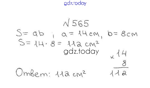 Ответы к §21. Площадь. Площадь прямоугольника Решение к главе 3. Умножение и деление натуральных чисел 565 Учебнику по Математике для 5 класса Мерзляк, Полонский Вентана-граф Алгоритм успеха 2016