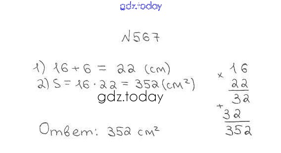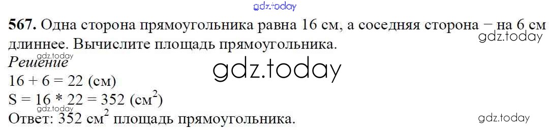 На страницах сайта gdz.today вы найдете учебный и вспомогательный материал, направленный на улучшения знаний школьной программы. ГДЗ - онлайн мир знаний §21. Площадь. Площадь прямоугольника Решение к главе 3. Умножение и деление натуральных чисел 567 Учебнику по Математике для 5 класса Мерзляк, Полонский Вентана-граф Алгоритм успеха 2016