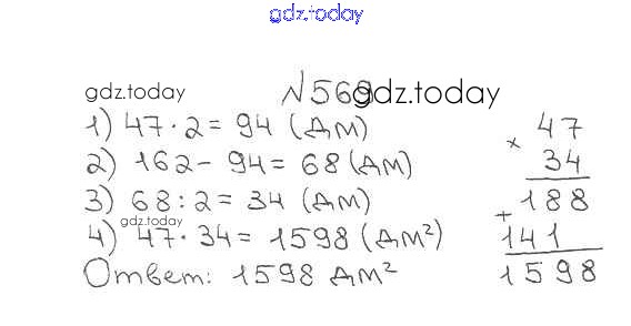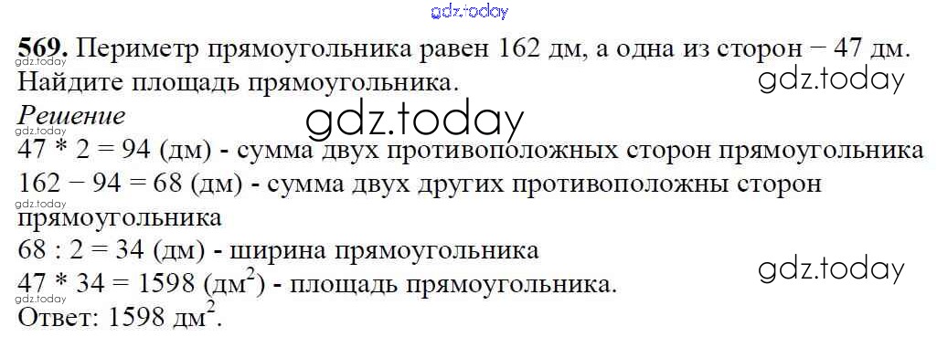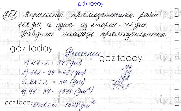 Ответы к §21. Площадь. Площадь прямоугольника Решение к главе 3. Умножение и деление натуральных чисел 569 Учебнику по Математике для 5 класса Мерзляк, Полонский Вентана-граф Алгоритм успеха 2016