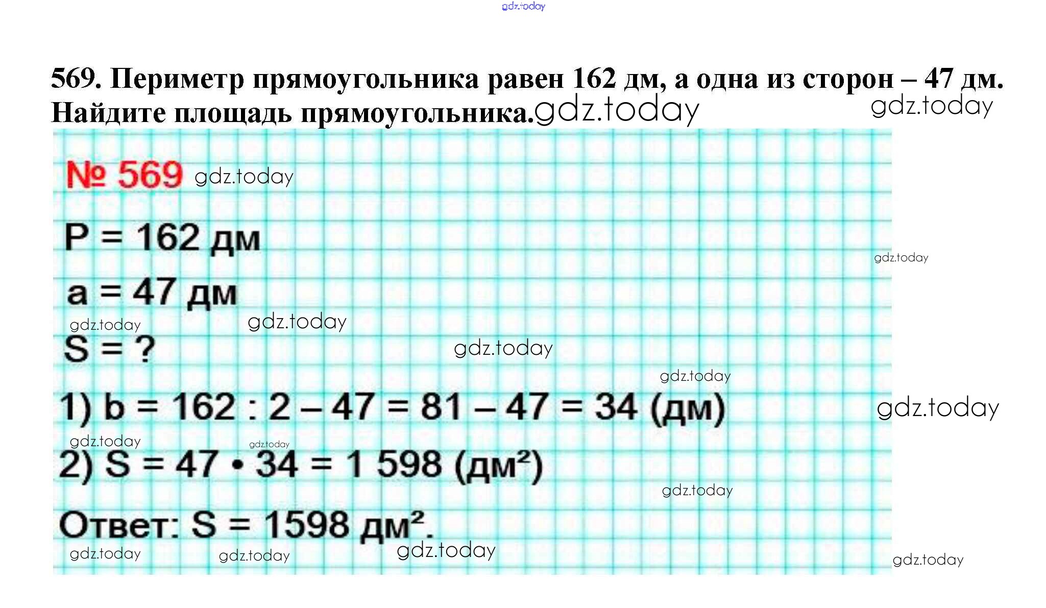 На страницах сайта gdz.today вы найдете учебный и вспомогательный материал, направленный на улучшения знаний школьной программы. ГДЗ - онлайн мир знаний §21. Площадь. Площадь прямоугольника Решение к главе 3. Умножение и деление натуральных чисел 569 Учебнику по Математике для 5 класса Мерзляк, Полонский Вентана-граф Алгоритм успеха 2016