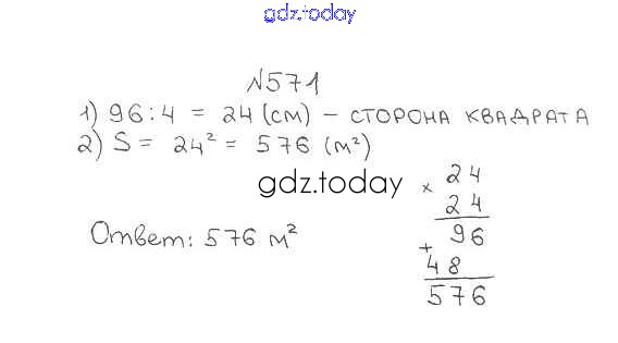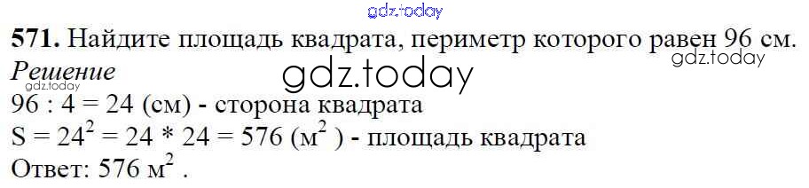 Ответы к §21. Площадь. Площадь прямоугольника Решение к главе 3. Умножение и деление натуральных чисел 571 Учебнику по Математике для 5 класса Мерзляк, Полонский Вентана-граф Алгоритм успеха 2016