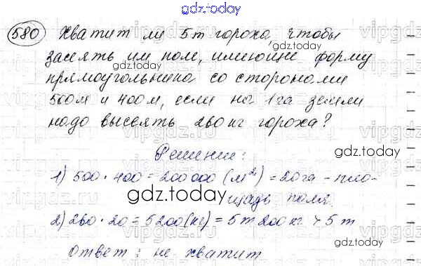 Ответы к §21. Площадь. Площадь прямоугольника Решение к главе 3. Умножение и деление натуральных чисел 580 Учебнику по Математике для 5 класса Мерзляк, Полонский Вентана-граф Алгоритм успеха 2016